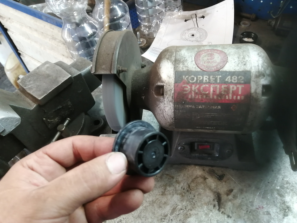 Клапан FEBI, посадочный диаметр большой, необходимо его уменьшить. На заточном станке убираем излишки пластика, то того момента пока с натягом не сядет в крышку ВАЗ.