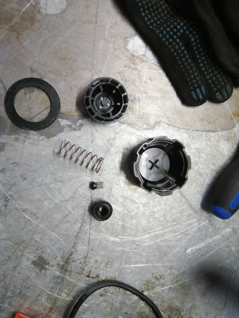 Теперь, о самом главном. Конструкция клапана ВАЗ не идеальна, всего пару пружин и пластиковые детали. Из-за конденсата, спустя некоторое время, пружинки покрываются коррозией (ржавчиной), и клапан перестает держать рабочее давление, а так же в случае повешения давления, скидывать его.