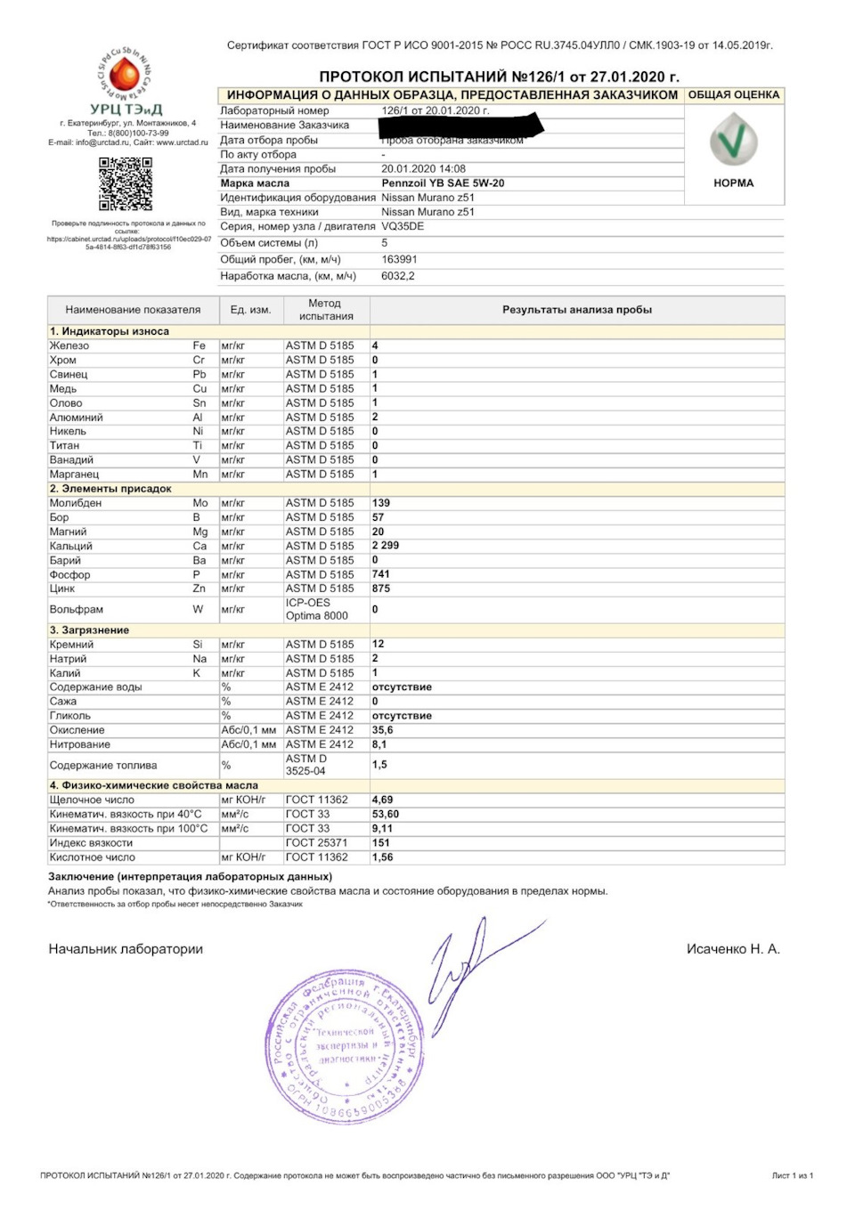 А теперь посмотрим, сворачивается ли минералка в гудрон при эксплуатации, забивает ли она каналы, коксуется ли? Авто — Мурано 3,5, пробег 155 моточасов, много работы на холостых. К сожалению, показательность анализа существенно испорчена кучей присадок как в топливо, так и в масло, но некоторые выводы мы сделать всё же сумеем.