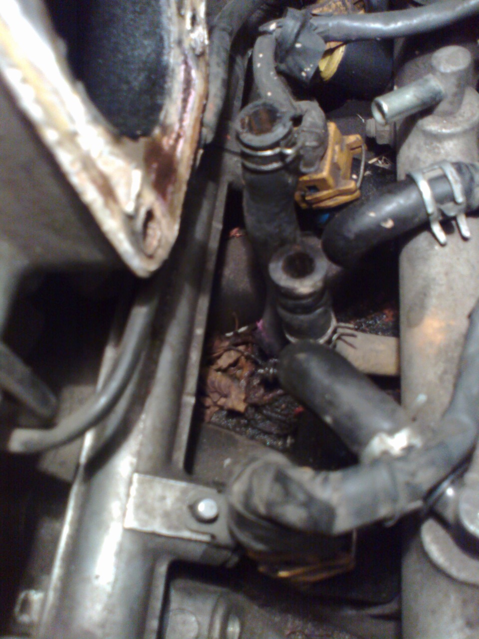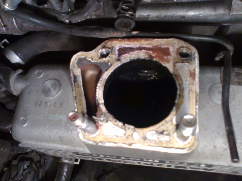 Вначале эта гадина никак не хотела отколупываться от коллектора — герметик плотно держал. Потом долго мучился с патрубками — к хомутам трудно подлезть, пришлось вдобавок снимать один патрубок подачи воздуха к форсунке. Ладно, одолел. Когда снял дроссель, обнаружилась прелестная картина — каналы охлаждающей жидкости засрались консистентной какой. Залил растворителем отмокать. На коллекторе та же фигня с каналами. Дальше разберу, надо будет промывать как-то.