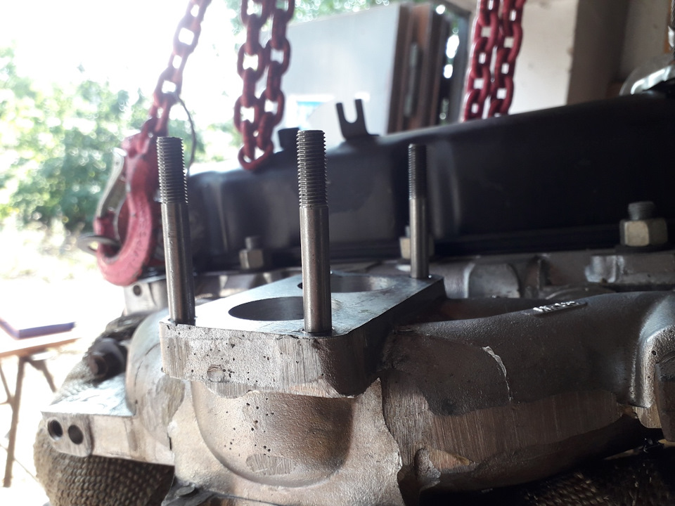 Шпильки под установку карбюратора мы удлиннили на 1см, старые были короткими изза проставки снизу.