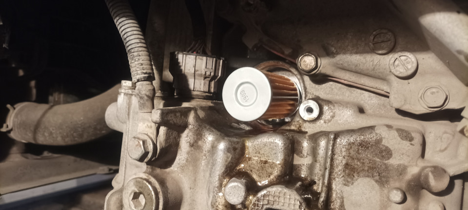 далее открутил головкой на 10 аж целых 15 болтов поддона, откручивал по немногу там масла еще много что бы не разлить мимо емкости в итоге слилось где то литра 4 может больше. Потом открутил фильтр также головкой на 10