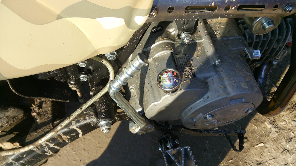 Потом ещё добавил растяжку на руль и термометр вместо щупа масла с алиэкспресс, термометр быстро сломался…