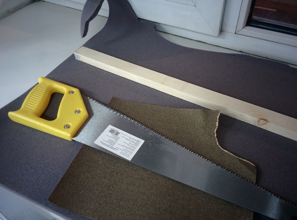 Далее нанес клеевой состав, подходящий для работ по дереву. Для дополнительной жесткости конструкции прикрутил планки саморезами.